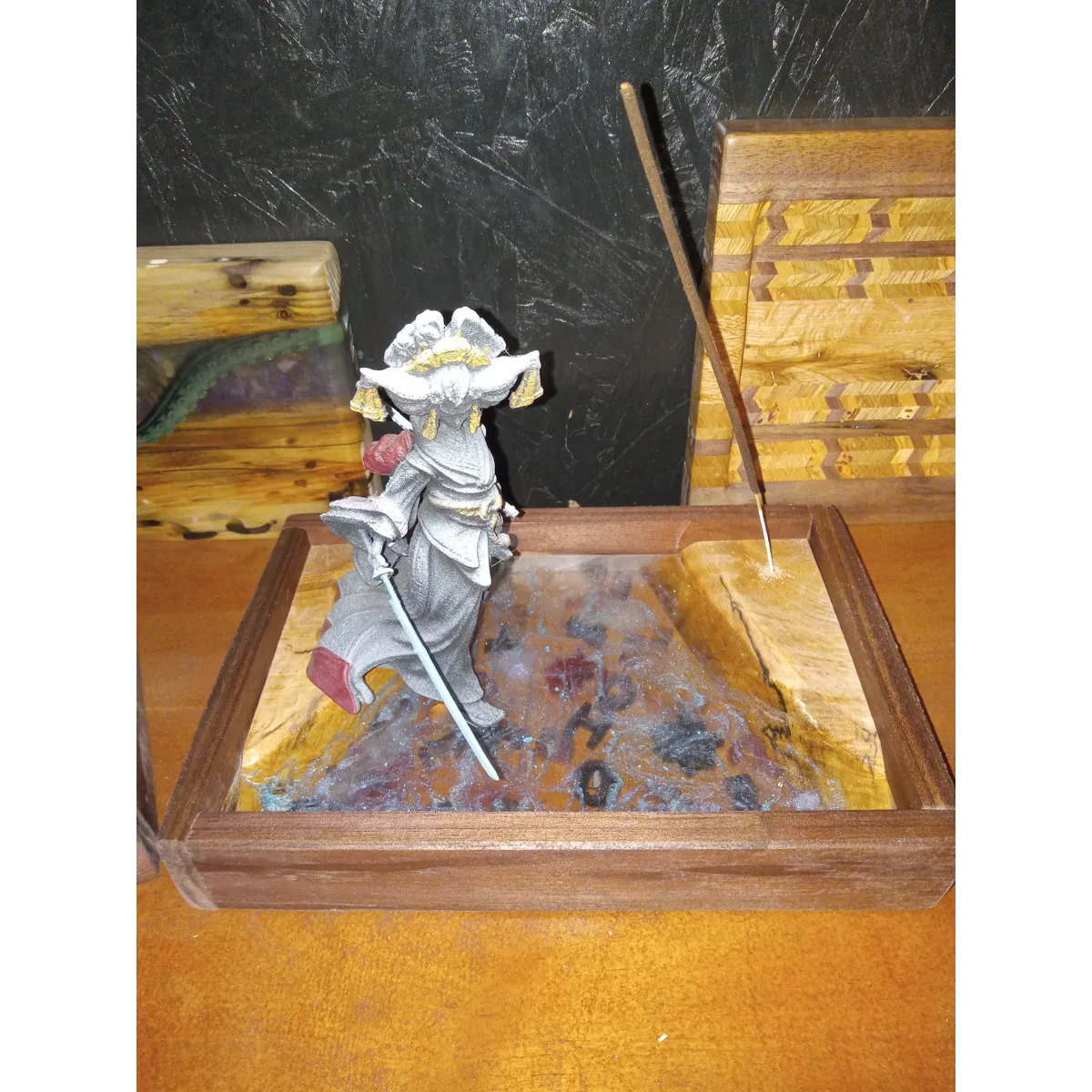A handmade, locally sourced, and milled hardwood incense burner. Made with Silver Maple, Black Walnut, Resin, and 3d printing. One of a kind for sure.